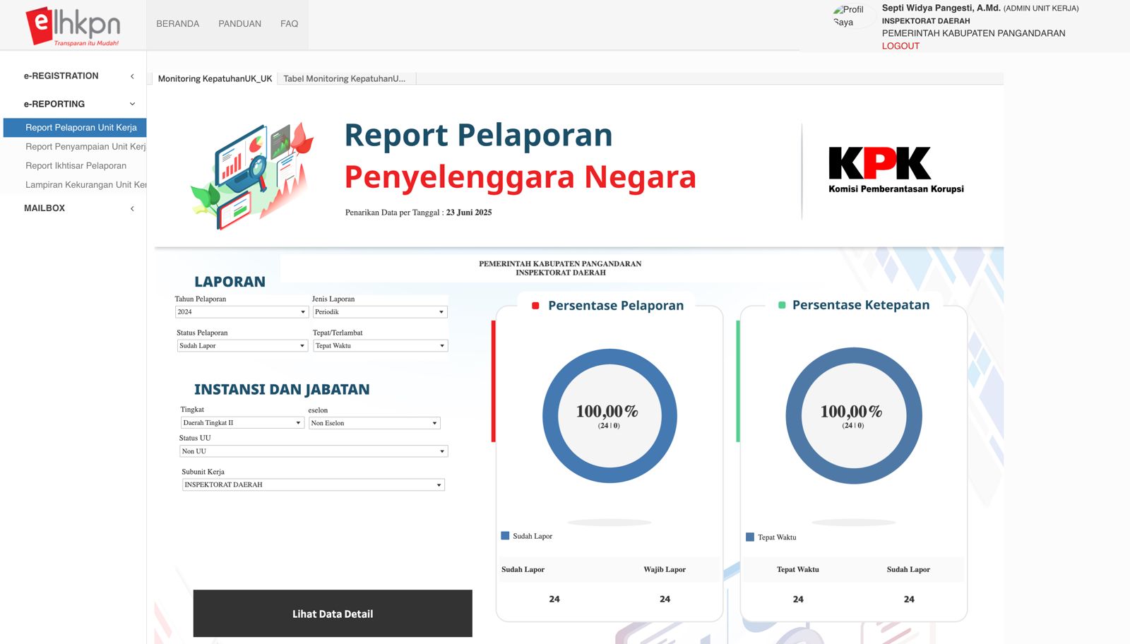 | 1 | LAKIP | INSPEKTORAT | 2025 | Lihat Dokumen |
